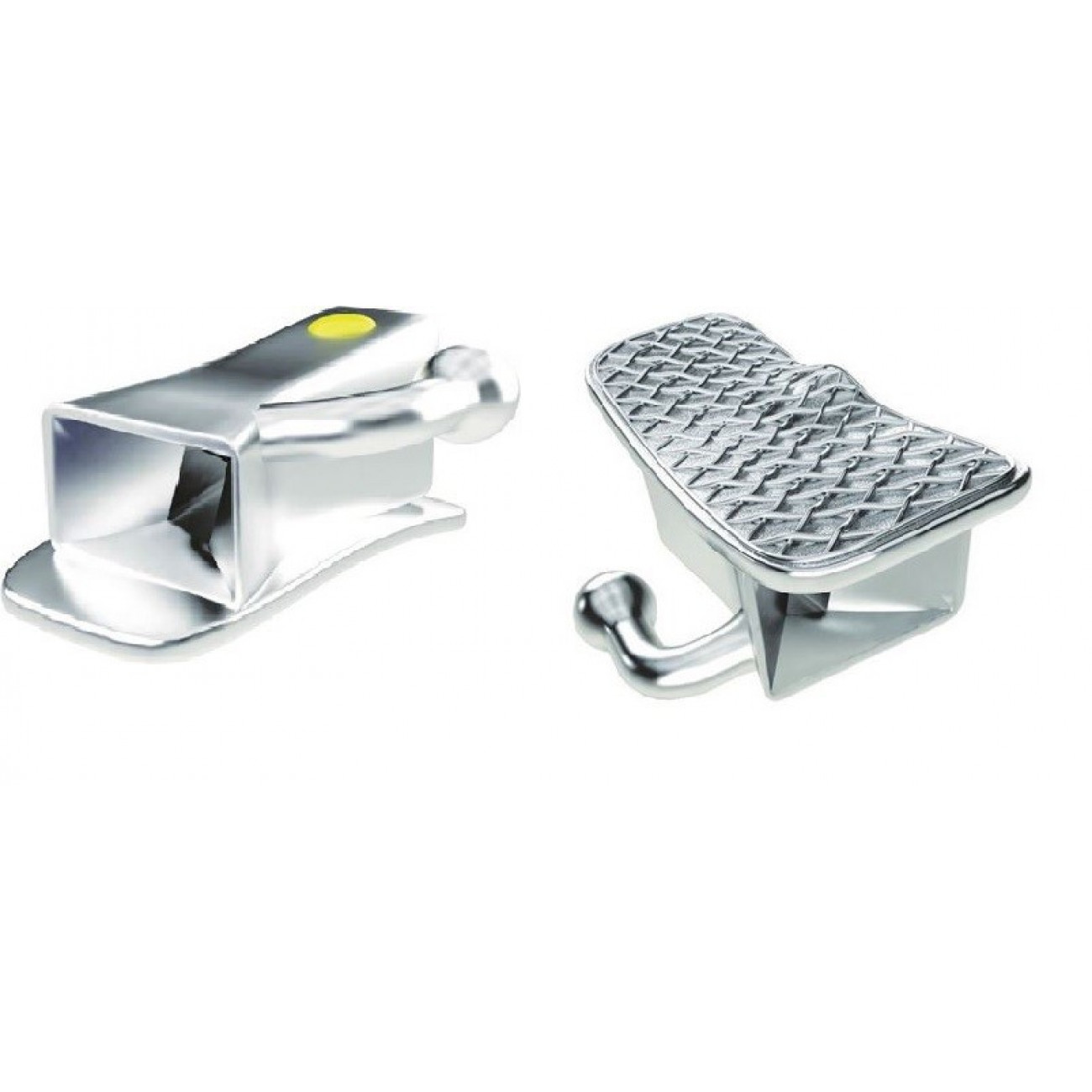 Щечные замки-трубки имеют сварное основание анатомической формы с сеткой, выгравированной лазером, для точного прилегания и адгезии. Все замки-трубки имеют воронкообразное входное отверстие для облегчения установки дуг. Поверхность, изогнутая в окклюзионно-гингвальной плоскости.