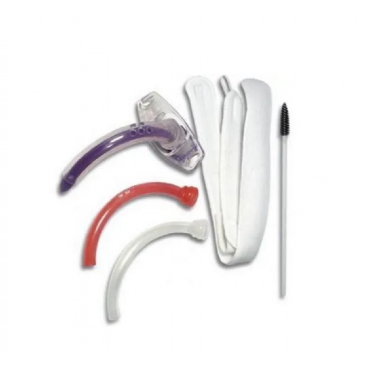 Набор включает в себя трахеостомическую трубку, сменные внутренние канюли, щеточку для чистки канюль и мягкую фиксирующую ленту.