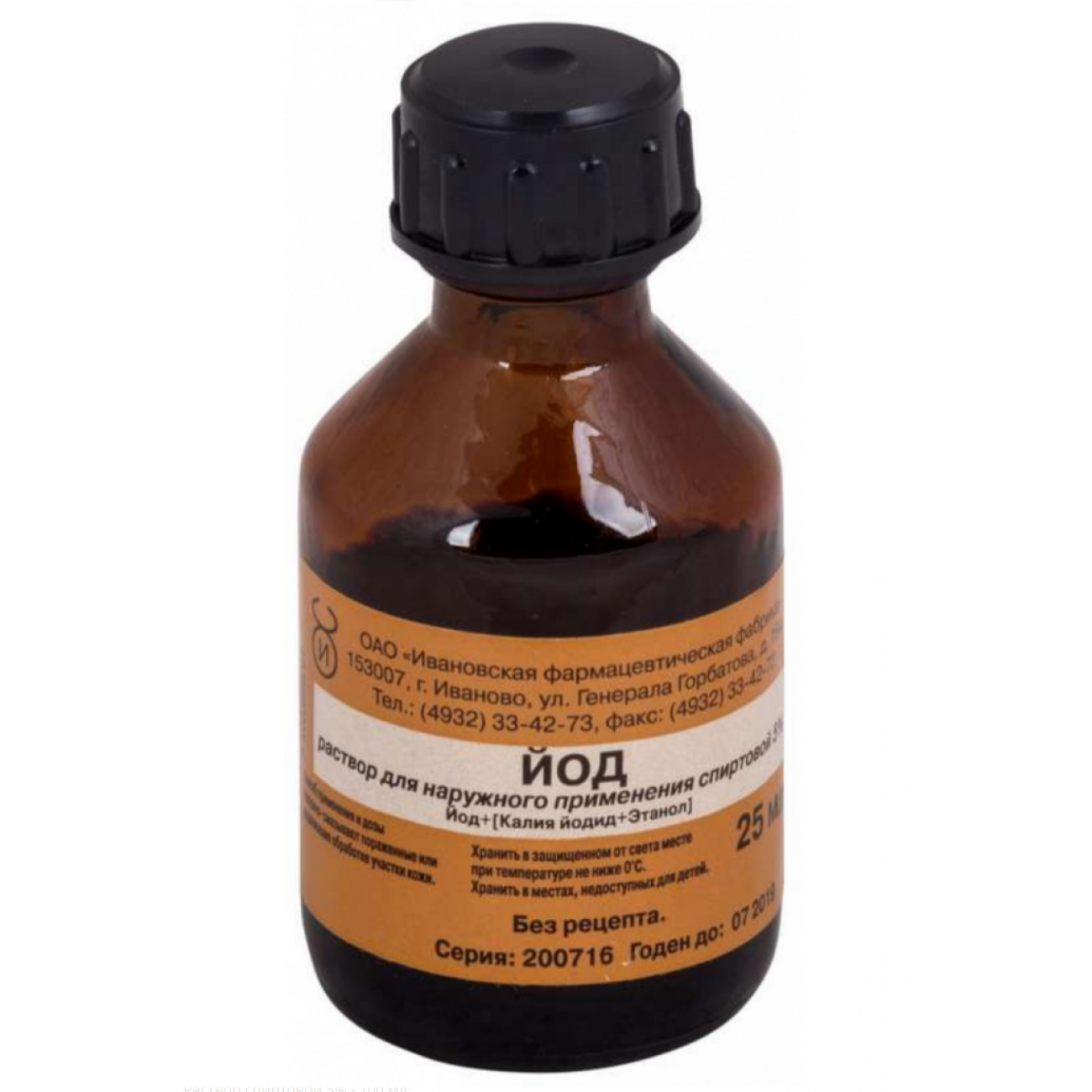 Йод 5% раствор для наружного применения спиртовой, флакон (25 мл) Ивановская ФФ