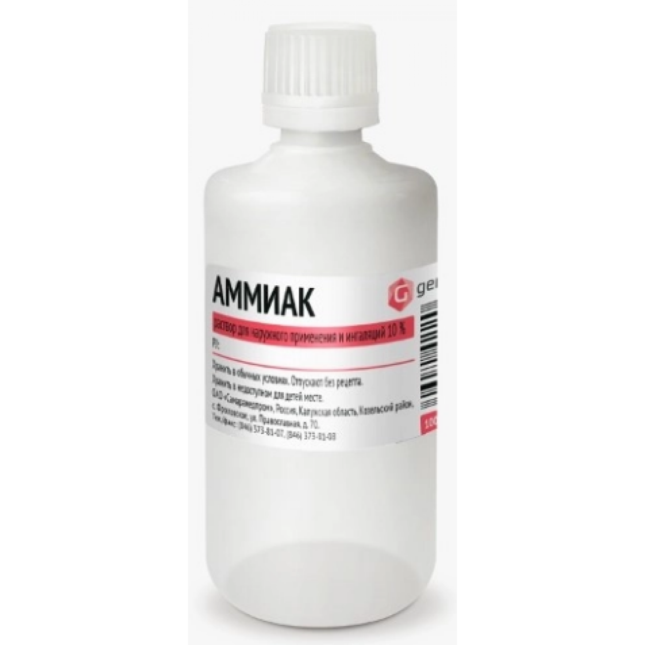 При вдыхании вызывает раздражение слизистой оболочки дыхательных путей и рефлекторно возбуждает дыхательный и сосудодвигательный центры. Оказывает дезинфицирующее действие на кожу при наружном применении. В больших дозах при ингаляционном введении Аммиак, раствор для наружного применения и ингаляций 10 % может вызвать рефлекторную остановку дыхания.