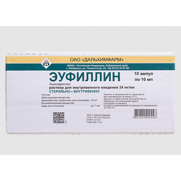 При выраженной интоксикации (содержание эуфиллина более 50 г / л) рекомендован гемодиализ. Нельзя применять барбитураты.