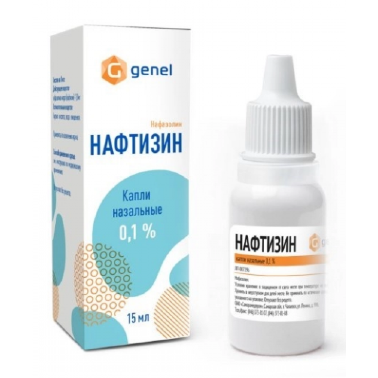 Действующее вещество: нафазолина нитрат (нафтизин) - 0,5 мг или 1,0 мг
