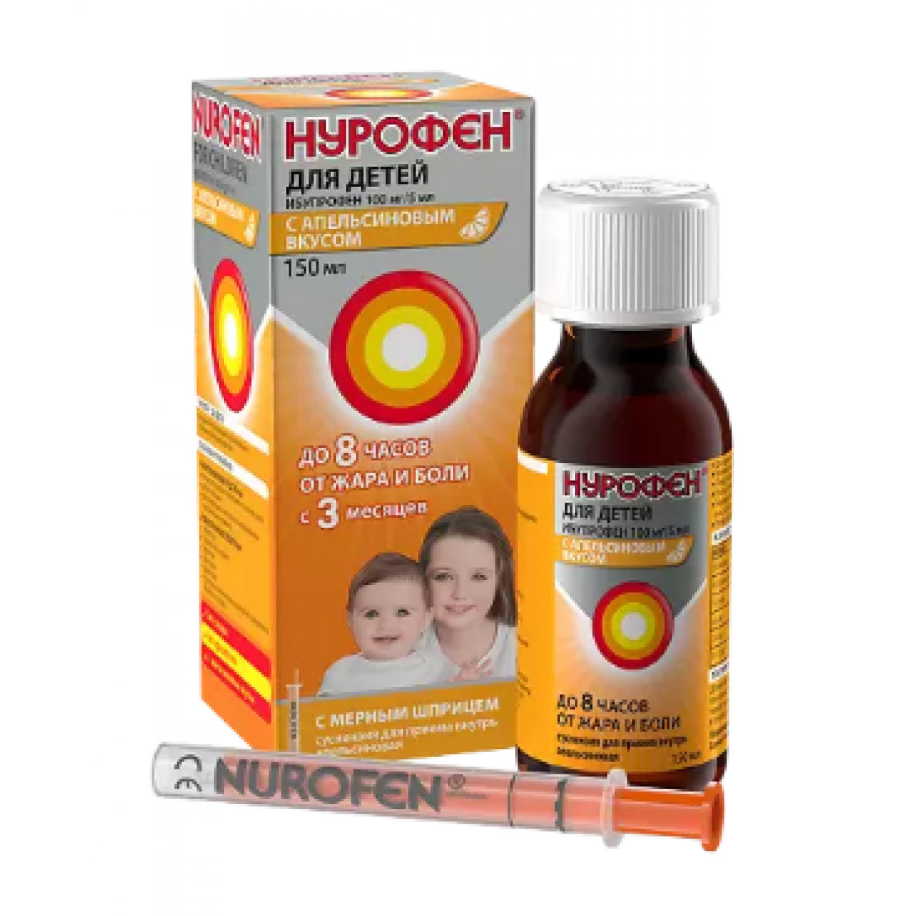 Нурофен для детей суспензия (100 мг/5 мл) апельсин, (150 мл) Рекитт Бенкизер