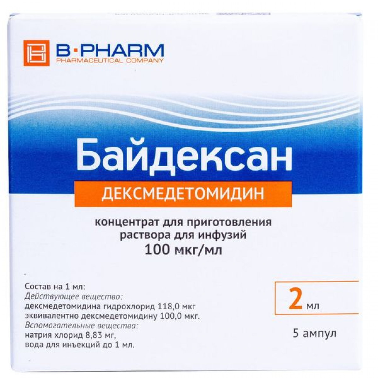 дексмедетомидина гидрохлорид - 118 мкг, что соответствует содержанию дексмедетомидина - 100 мкг.
