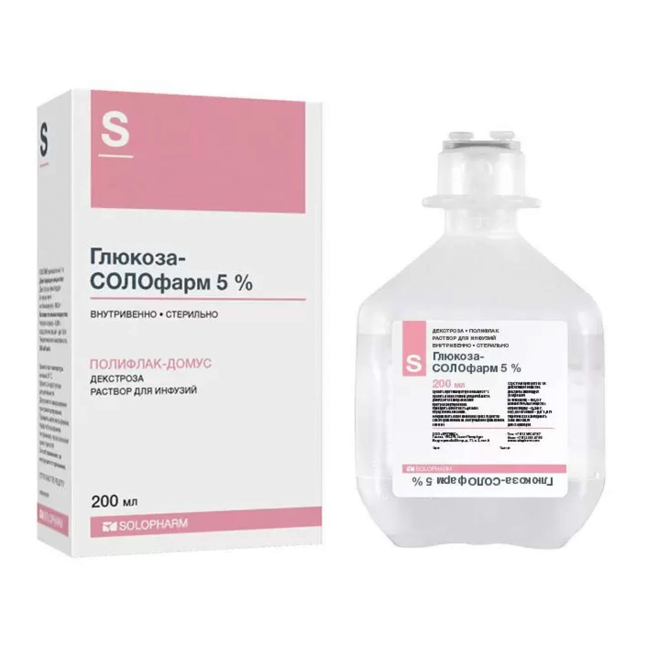 Глюкоза-СОЛОфарм Полифлак Домус 5% (пластик, 200 мл) Гротекс