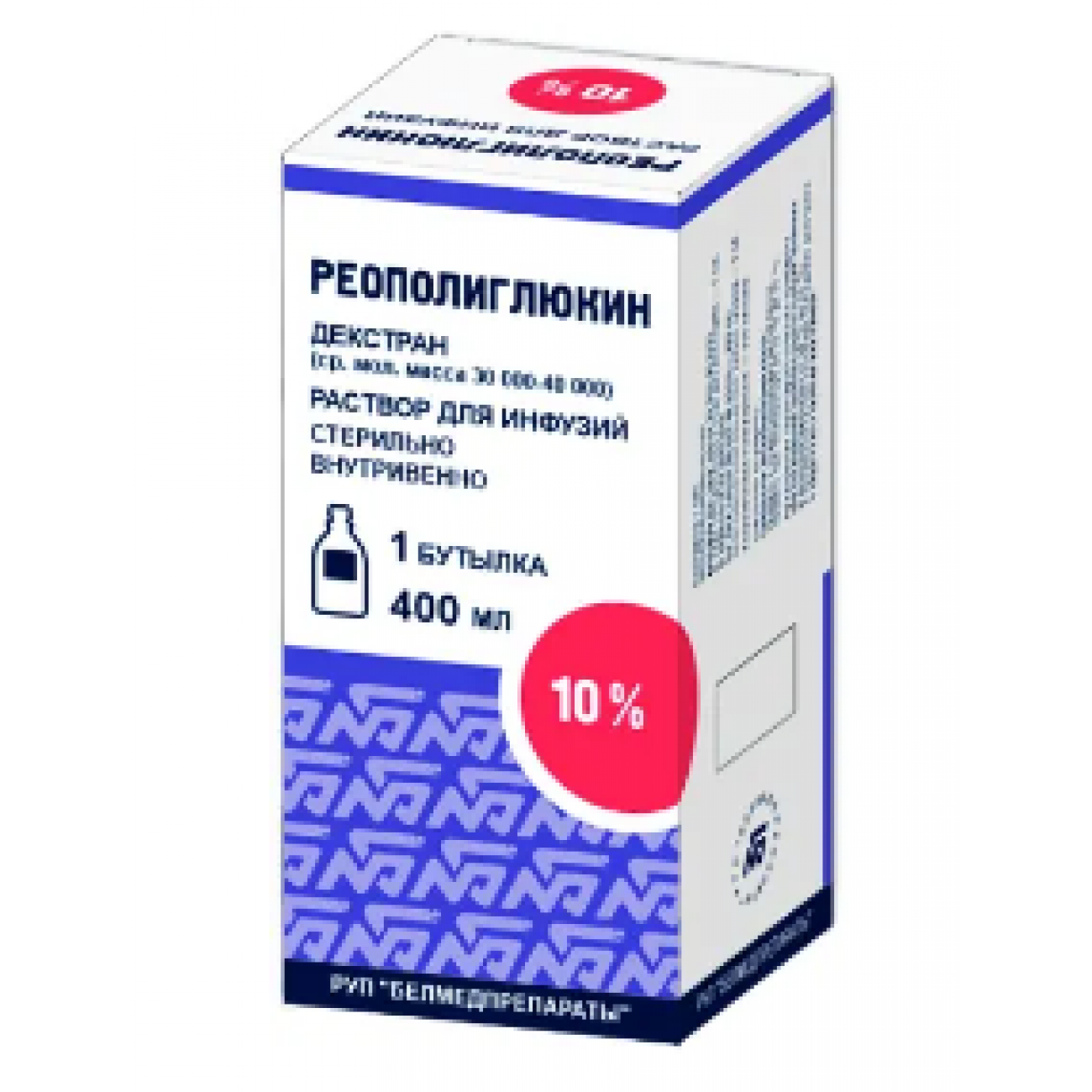 10 % водного раствора декстрана с М.м. 30000-40000- 400 мл,
