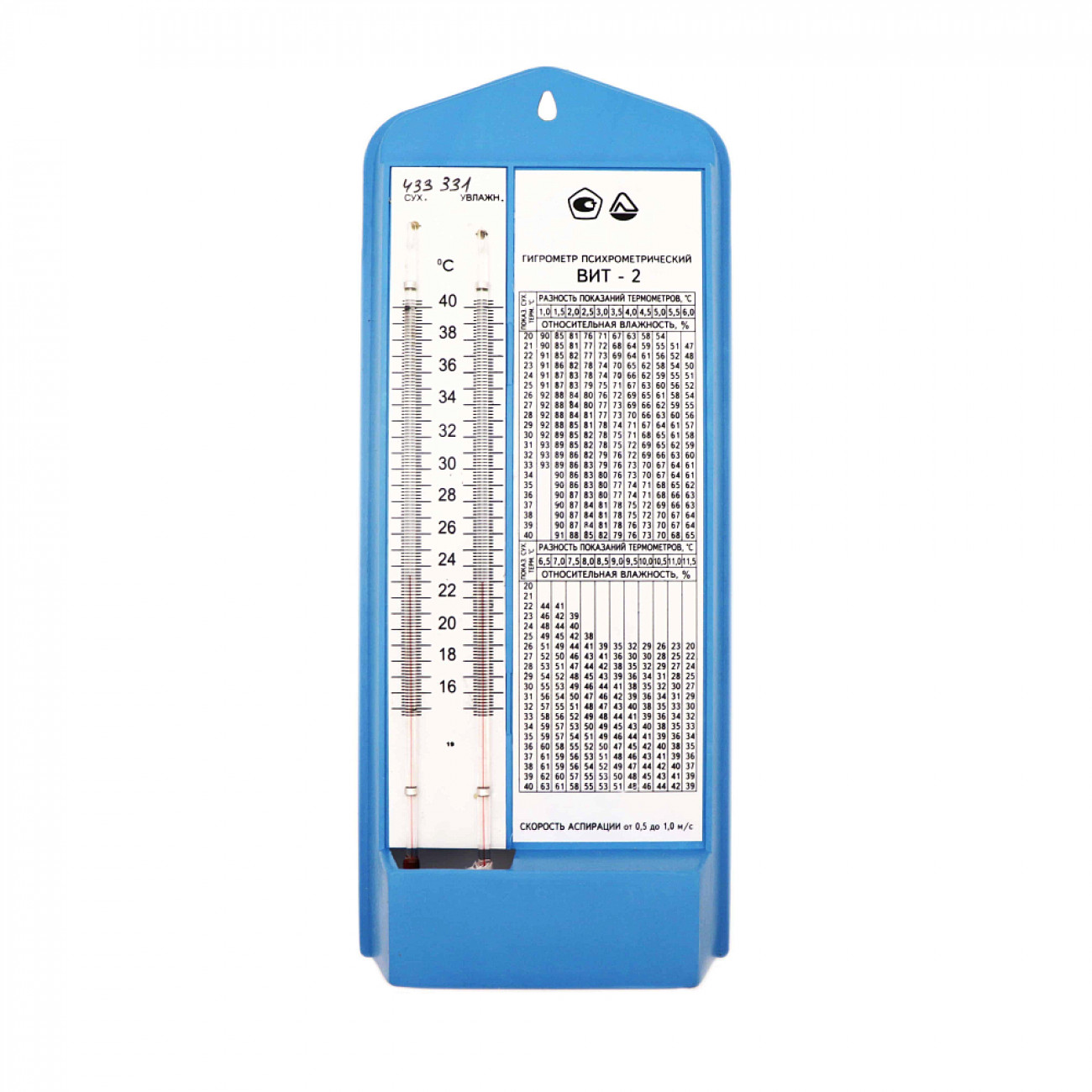 Психометрический гигрометр ВИТ рассчитан на температуру (от +15°С до +40°С) и обладает большой популярностью и используется не только в медицинских помещениях, но и дома.Конструкция психрометрического гигрометра проста.Основание изготавливается из пластика. К нему прилегают 2 термометра и питатель. Последний делают из стекла.
