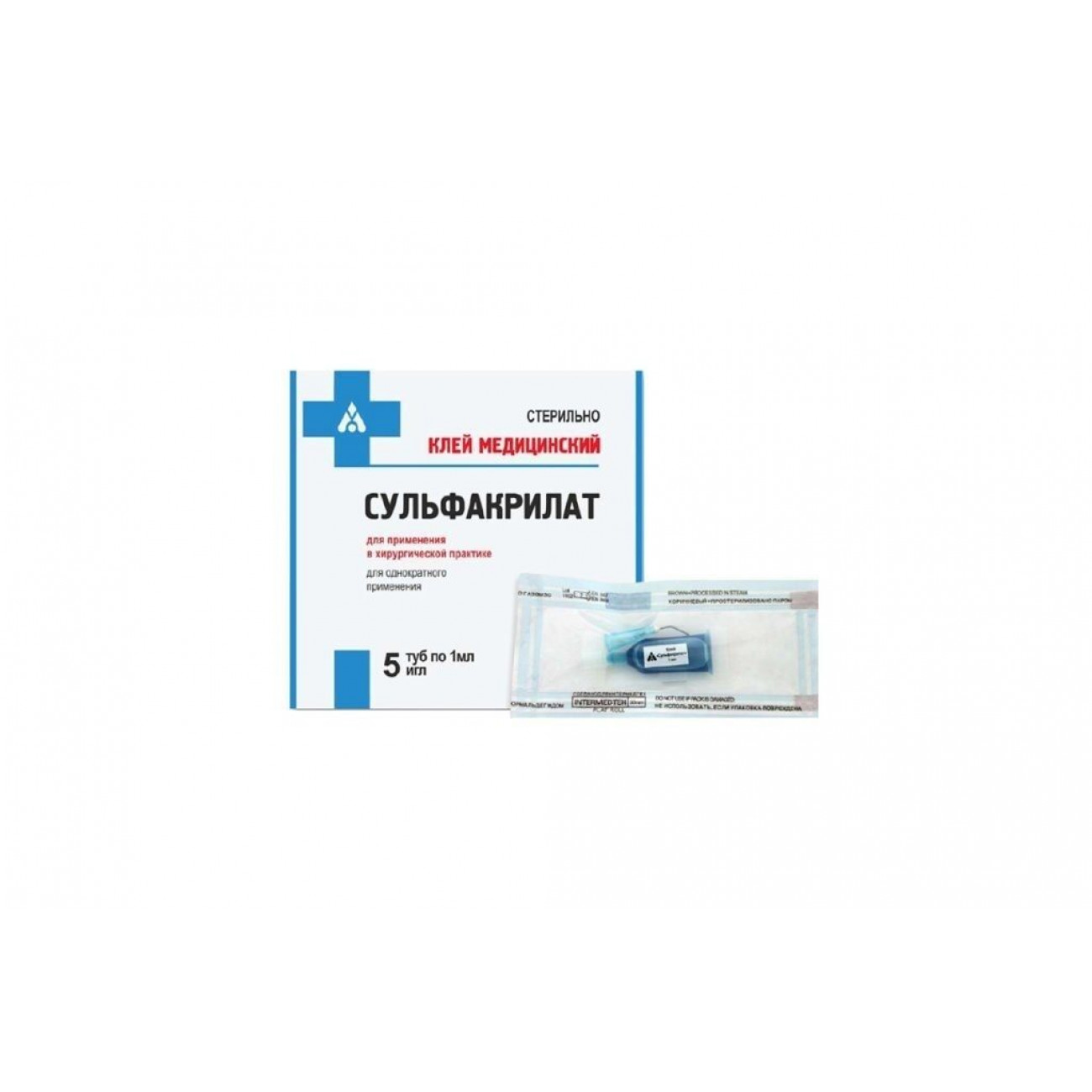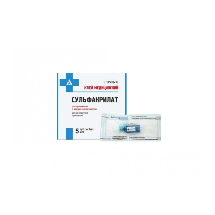 Медицинский клей Сульфакрилат – это цианакрилатная клеевая композиция, включающая в свой состав антифлогистические, пластифицирующие и противомикробные элементы. Представлен в стерильном шприце вместимостью 1 мл.
