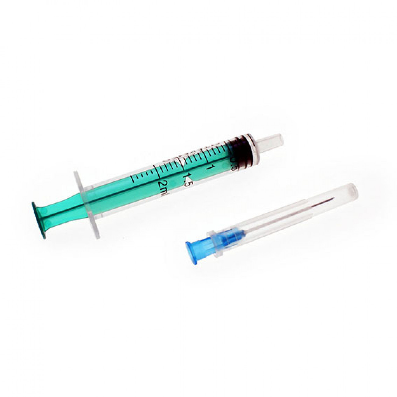 Трехкомпонентный шприц 2мл, индивидуально упакован в блистер, игла лежит рядом.