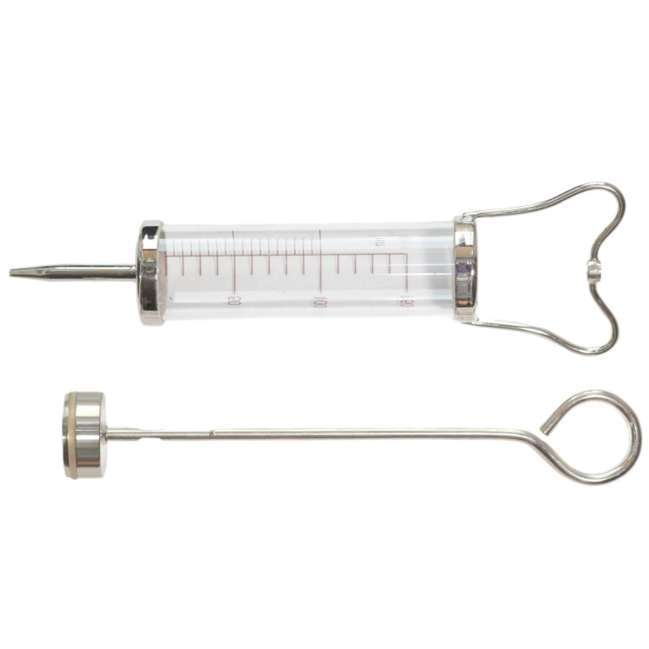 Шприц имеет силиконовое кольцо на поршне с двойной шкалой, а также обладает паяным соединением арматуры.