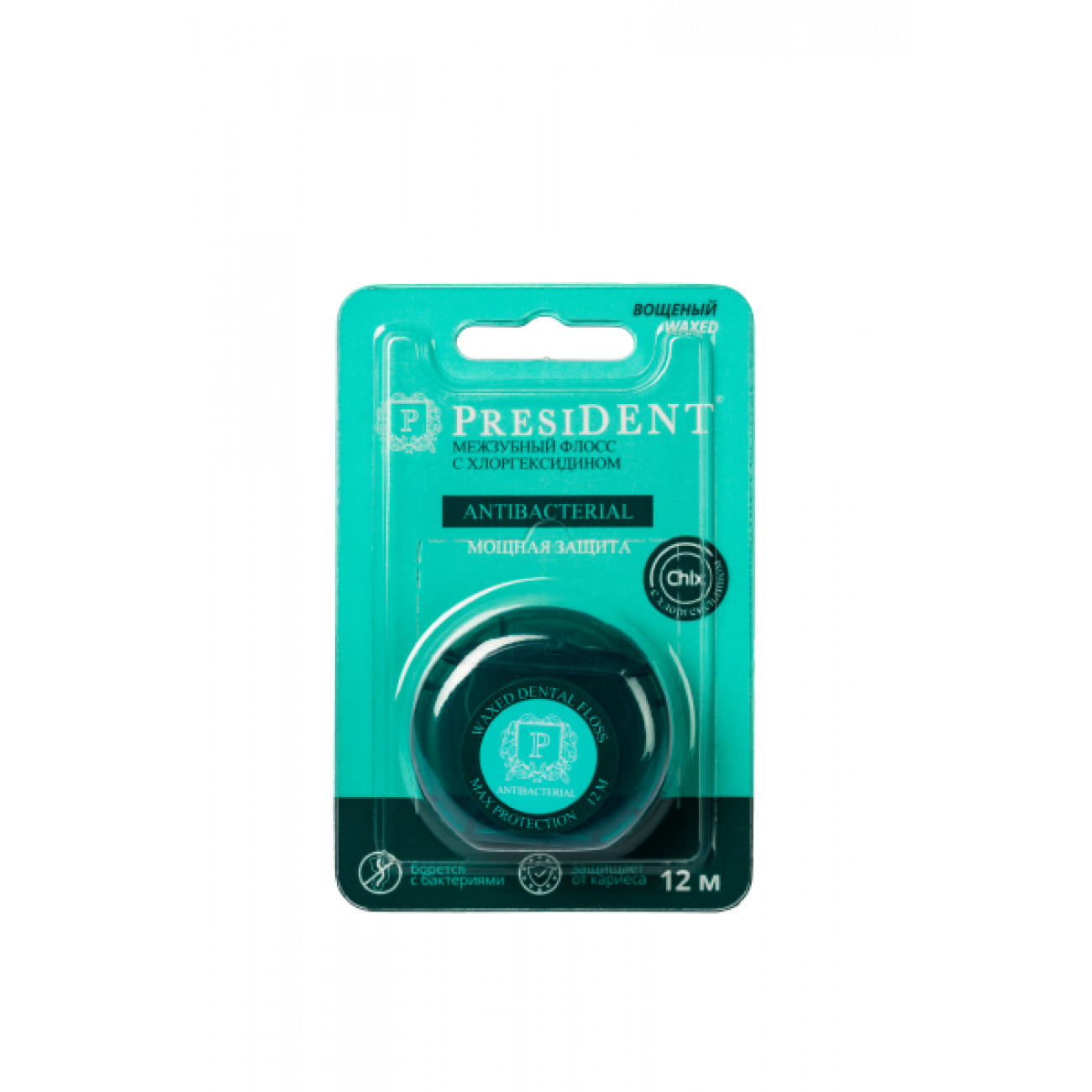PRESIDENT Antibacterial межзубный флосс с хлоргексидином 12 м