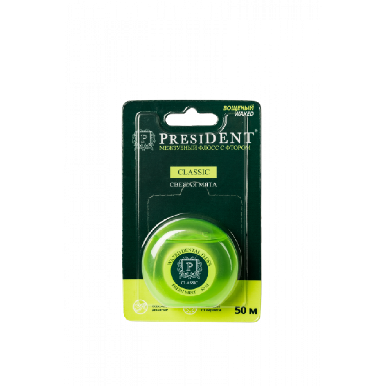 PRESIDENT Classic Свежая мята межзубный флосс с фтором 50 м
