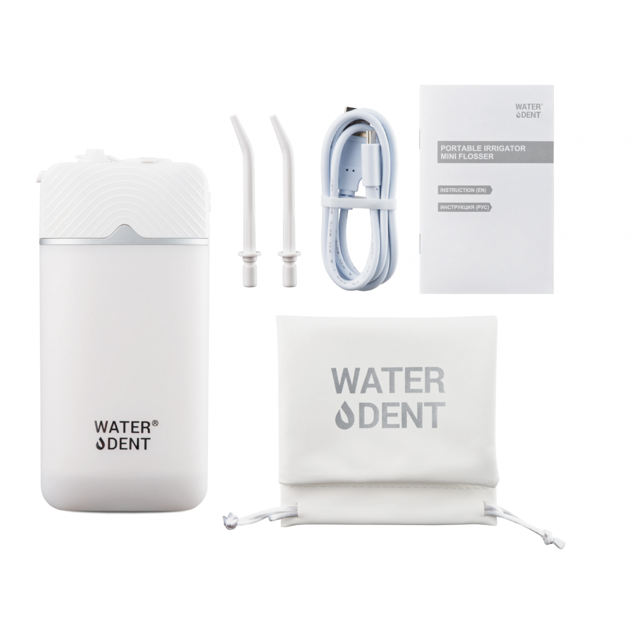 Портативный ирригатор Waterdent Mini Flosser в мини формате для путешествий удаляет 99,9% зубного налета, эффективно очищает межзубные пространства, обеспечивает массаж десен и поддерживает здоровье полости рта.