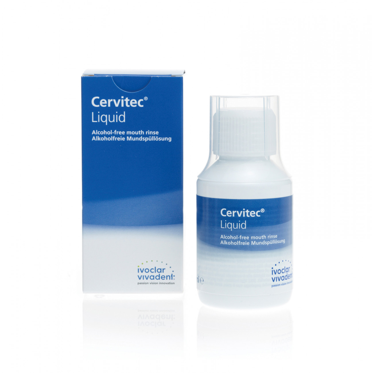Cervitec Liquid – ополаскиватель для полоскания рта, без спирта, содержит 0,1% раствор хлоргексидина, ксилит и базовые эфирные масла.