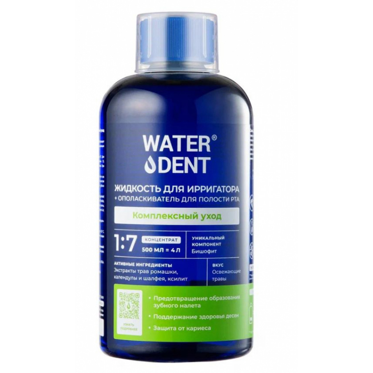 Жидкость для ирригатора и ополаскиватель 2 в 1, в качестве активных компонентов используются: бишофит, биосол, экстракт ромашки, шалфея, зверобоя.