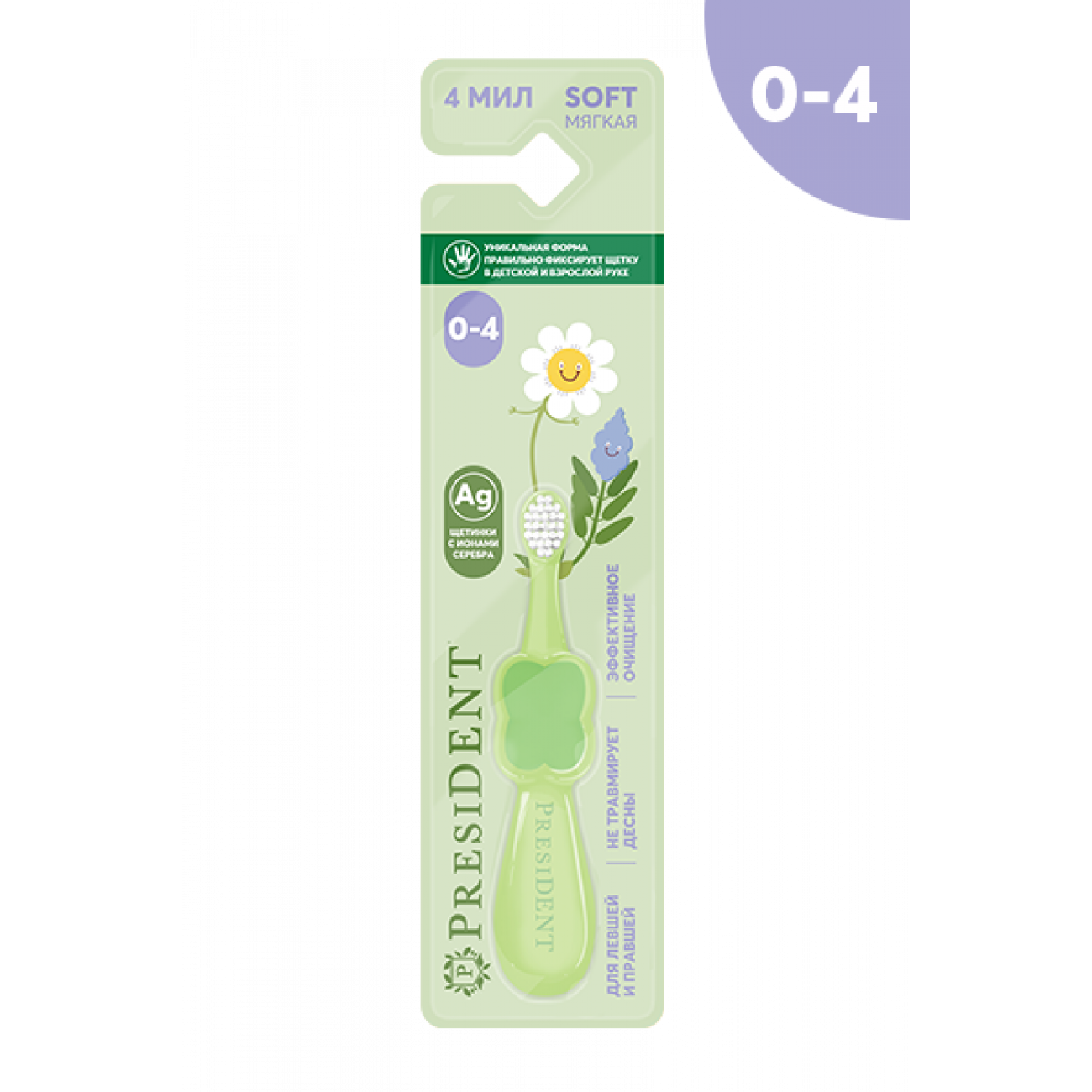 Мягкая зубная щетка PRESIDENT ® для детей от 0 до 4 -х лет.