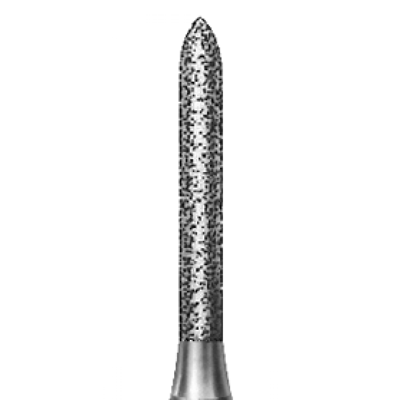 Бор алмазный для параллельного желобообразного уступа, торпедовидный, "финишный", хвостовик турбинный (FG), L раб. части 8,0 мм, Ø=1,2 мм