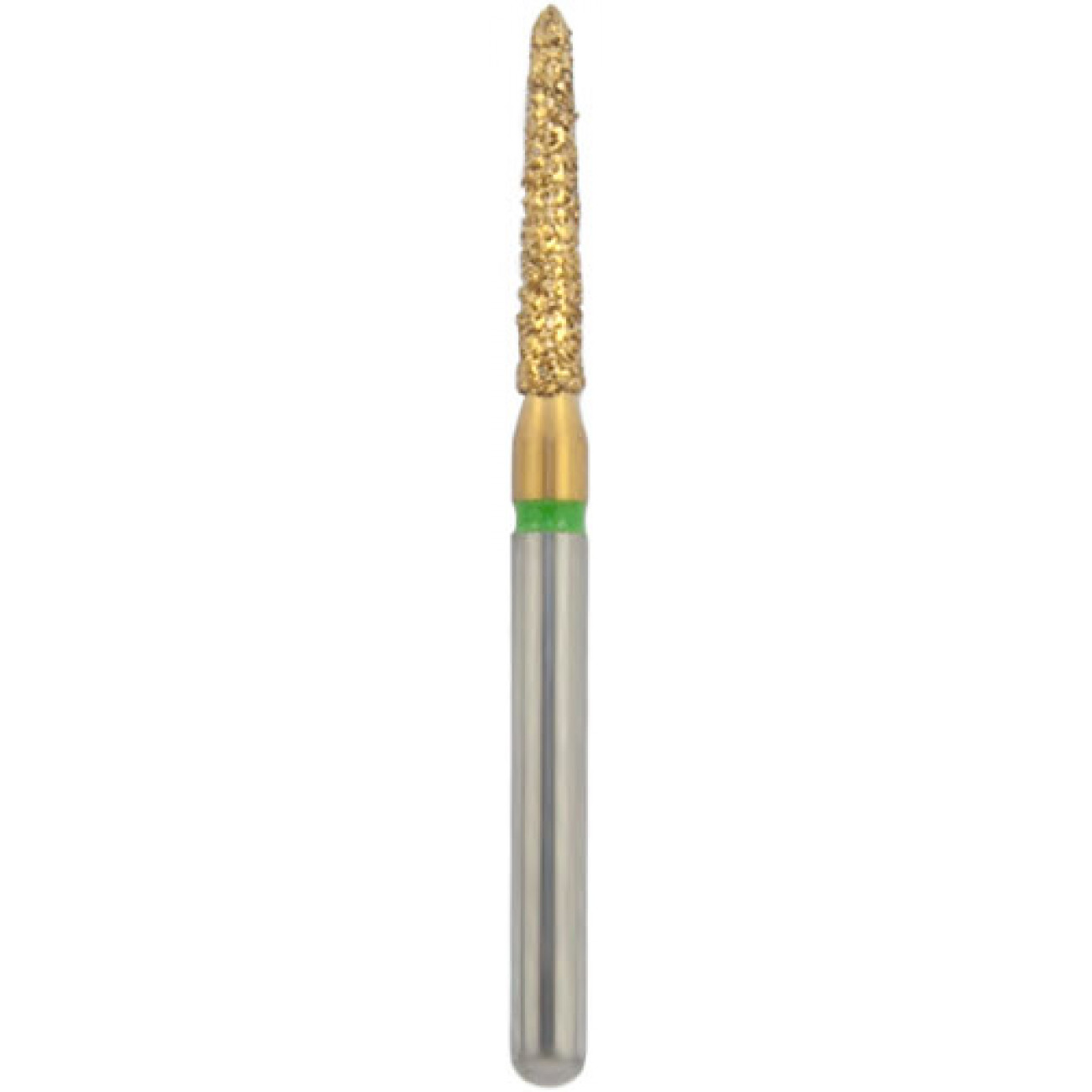 Износоустойчивое покрытие из нитрид титана (TiN) защищает режущую грань алмазного зерна от сколов и предотвращает накопление удаленных тканей, обеспечивая срок службы до 80 циклов применения! Благодаря более низкому коэффициенту трения, бор Z878K-014C-FG ABACUS меньше нагревается при препарировании твердых тканей зуба.