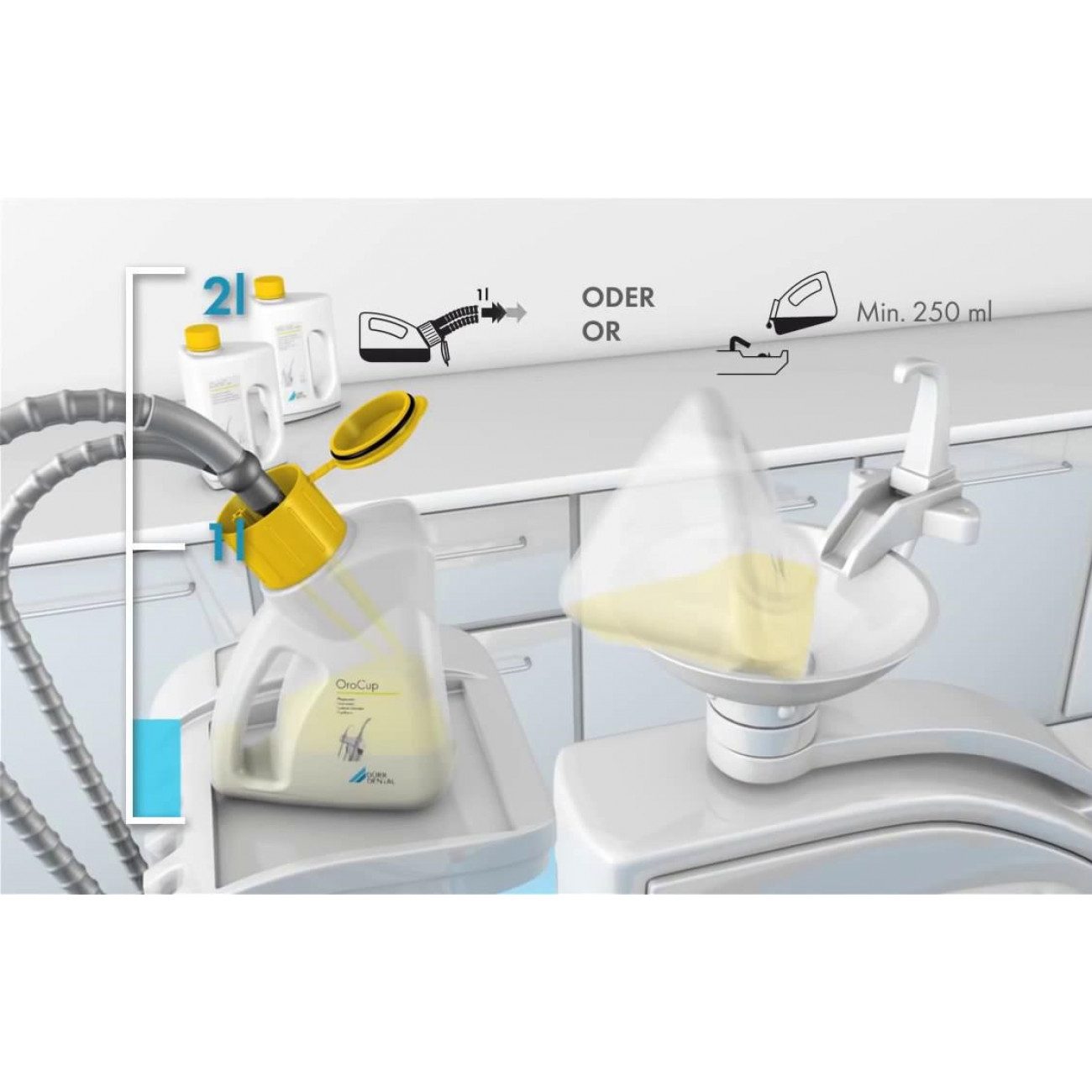 OroCup - система гигиенического ухода для дезинфекции и очистки аспирационных установок, 2л | Durr Dental (Германия)