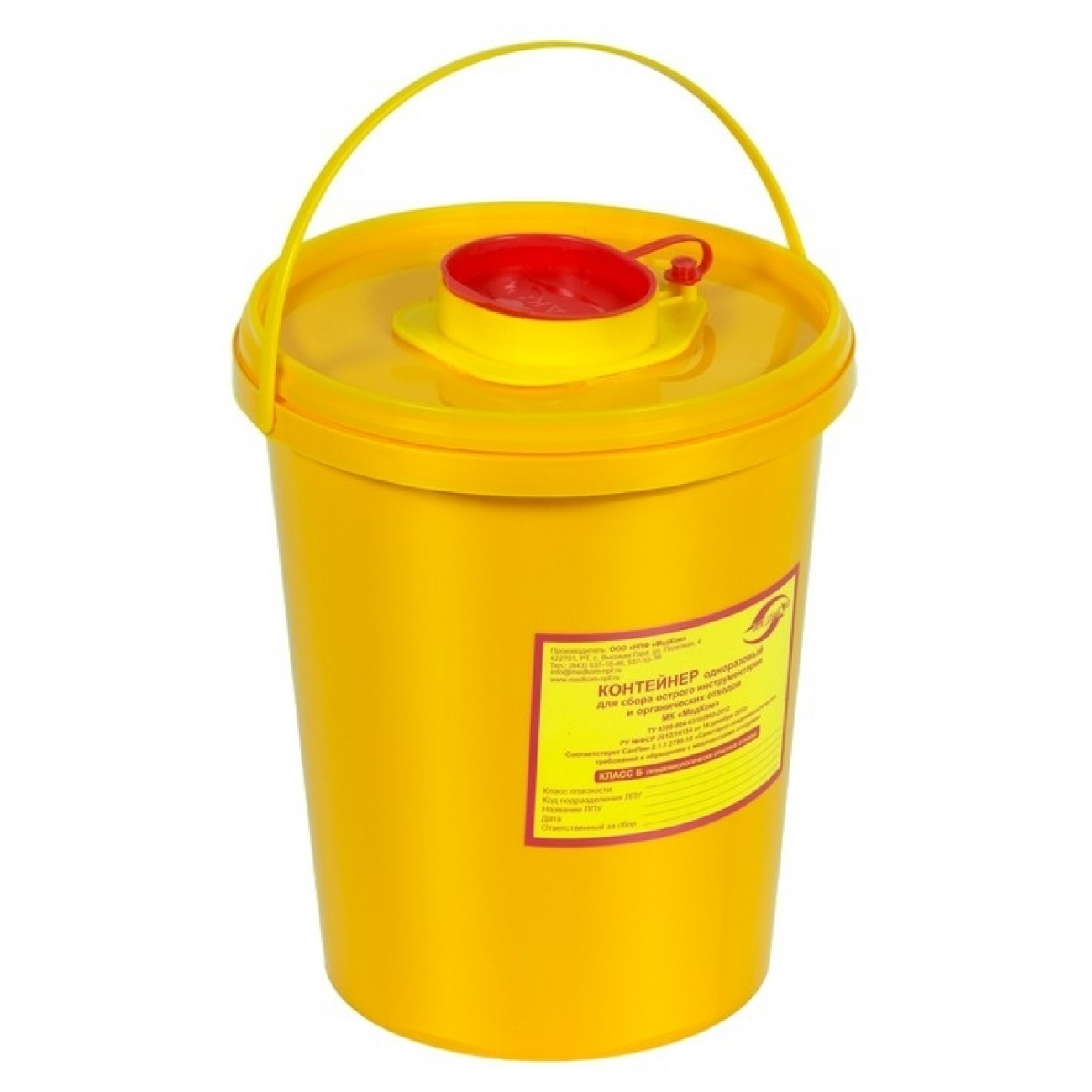 Ёмкость-контейнер "МедКом" для сбора острого инструментария 3 л, класс Б - предназначен для безопасного сбора эпидемиологически опасных отходов и бесконтактного сбора колюще-режущих отходов в местах первичного образования.
