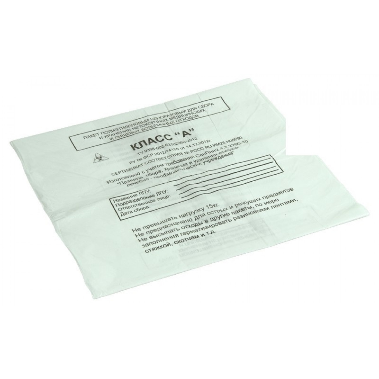 Пакет для медицинских отходов Класс А - Белый (неопасные) - отходы, не имеющие контакта с биологическими жидкостями пациентов, инфекционными больными, нетоксичные отходы.