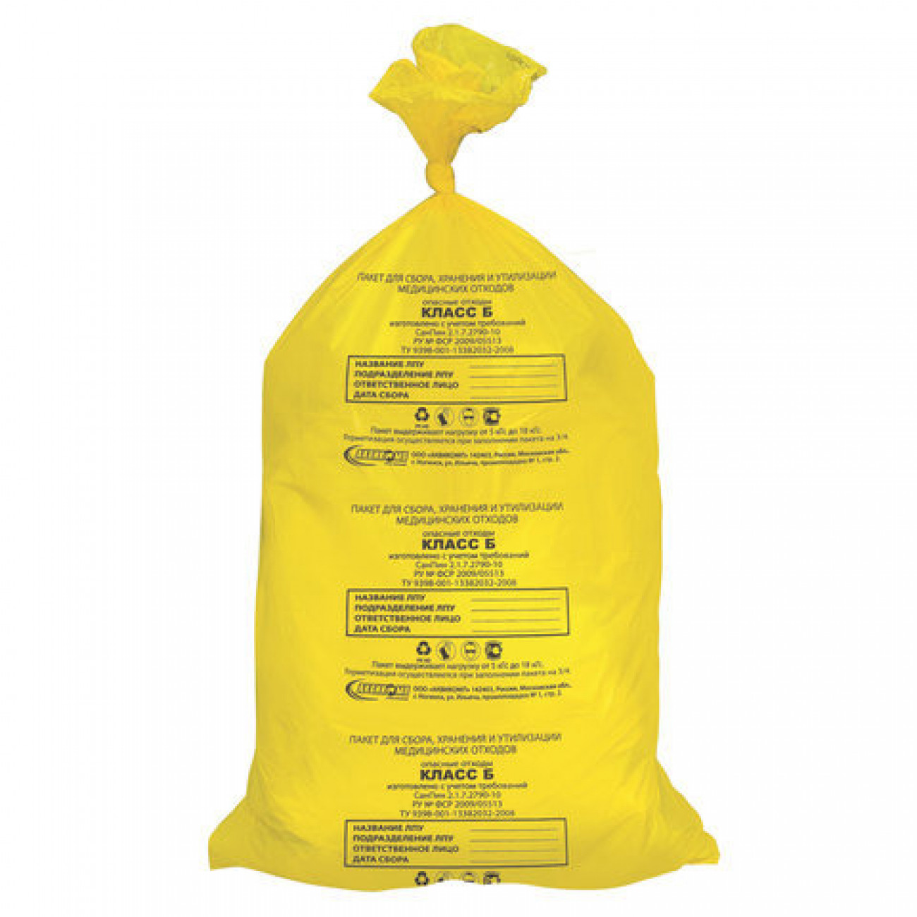 Пакет для медотходов класс Б(Желтый) 10л, 10мкн (уп 100шт на завязках) АМС-Мед