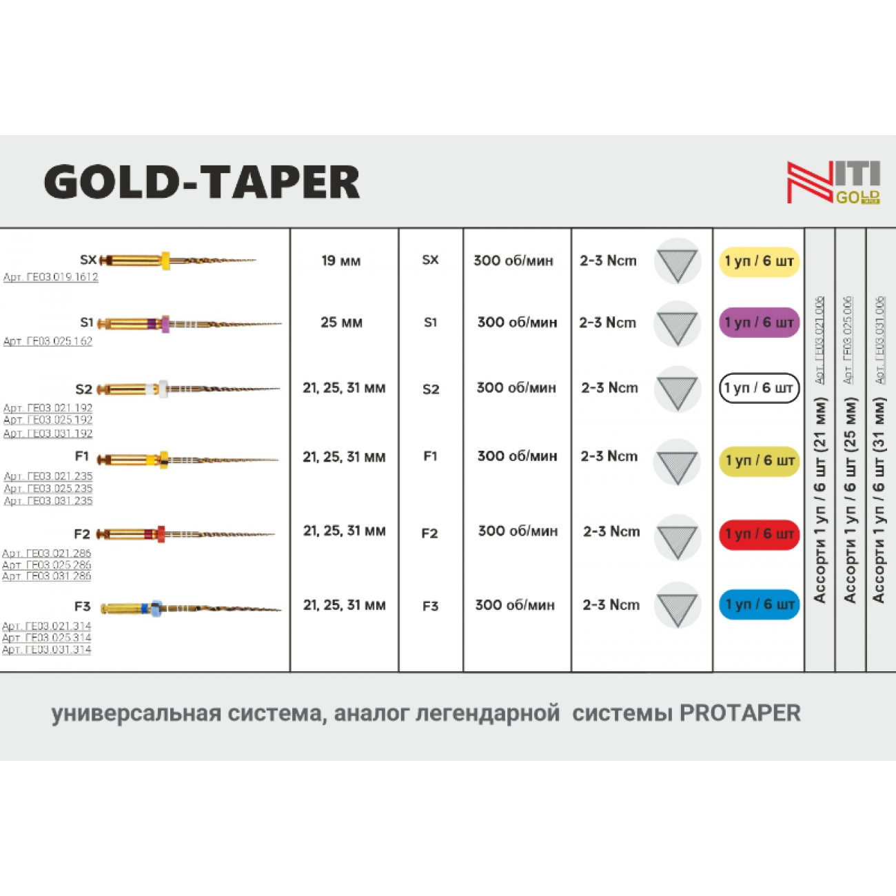 Голд-Тейпер файл 25мм S1 (6 шт/уп) Goffshtein Dental Development (GOLD-TAPER)