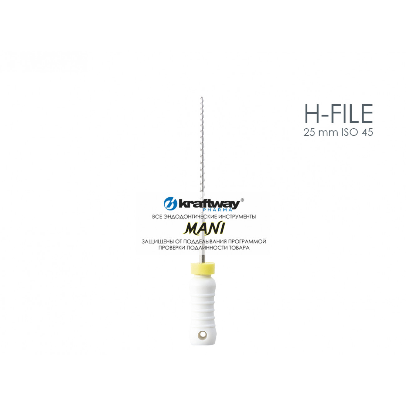 Ручной режущий стоматологический эндодонтический инструмент со спиральной нарезкой рабочей части. Материал рабочей режущей части - нержавеющая сталь, материал рукоятки – пластик (полибутилентерефталат).