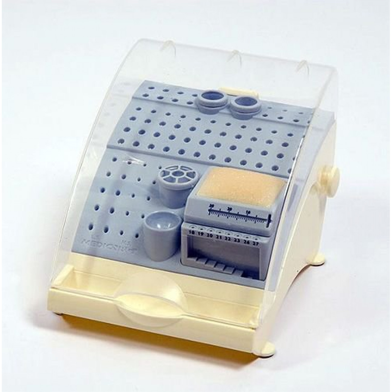 Панорамный стенд с крышкой для хранения эндодонтических инструментов, мелких пнинадлежностей и боров.