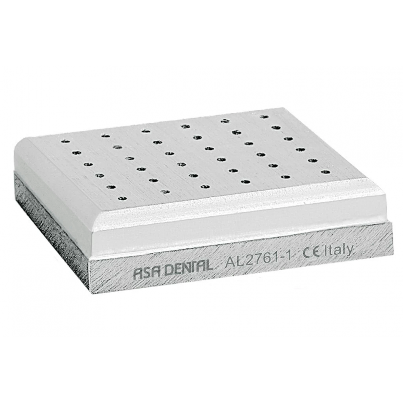 Автоклавируемая алюминиевая подставка AL2761-1 от компании Asa Dental предназначена для безопасного хранения высокоскоростных боров (карбид-вольфрамовых, с алмазным напылением) с хвостовиком типа FG длиной до 20 см.