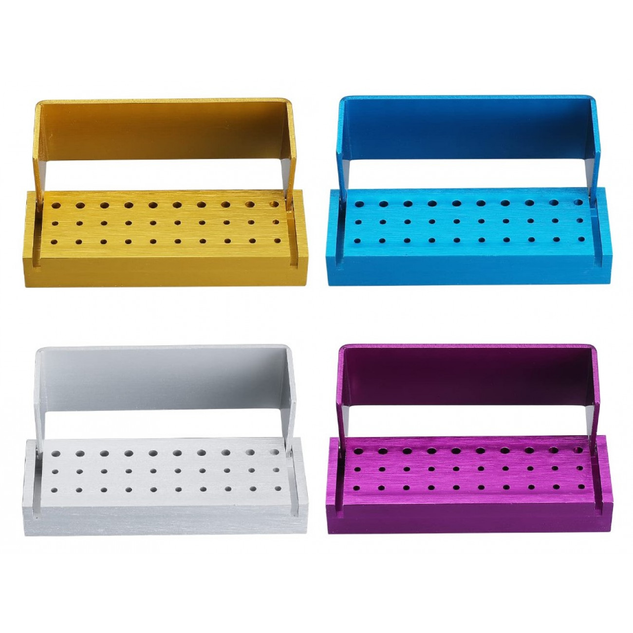 Металлический автоклавируемый термоблок на 30 отверстий предназначен для хранения и температурной стерилизации боров типа FG для турбинных стоматологических наконечников, а также боров RA для угловых наконечников. Для более надежного удержания боров с коротким хвостовиком термоблок оснащен вставками из термоустойчивого силикона.