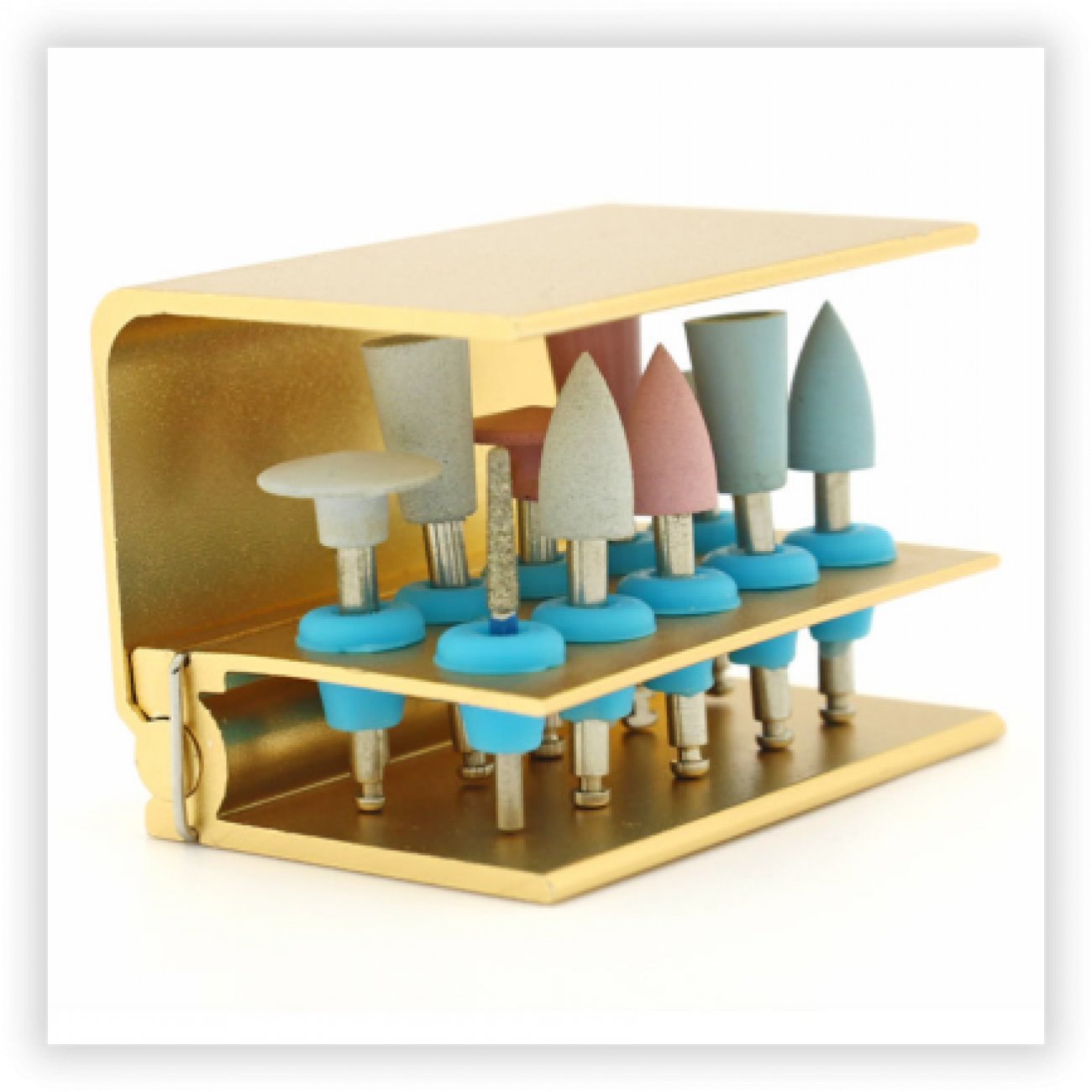 Металлический автоклавируемый термоблок на 10 отверстий предназначен для хранения и температурной стерилизации боров типа FG для турбинных стоматологических наконечников, а также боров RA для угловых наконечников. Для более надежного удержания боров с коротким хвостовиком термоблок оснащен вставками из термоустойчивого силикона.