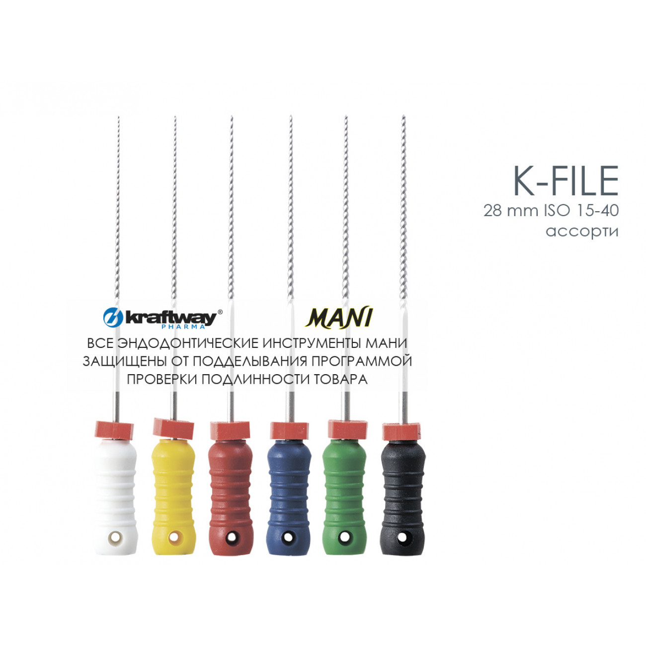 Ручной режущий стоматологический эндодонтический инструмент со спиральной нарезкой рабочей части. Материал рабочей режущей части - нержавеющая сталь, материал рукоятки – пластик (полибутилентерефталат).