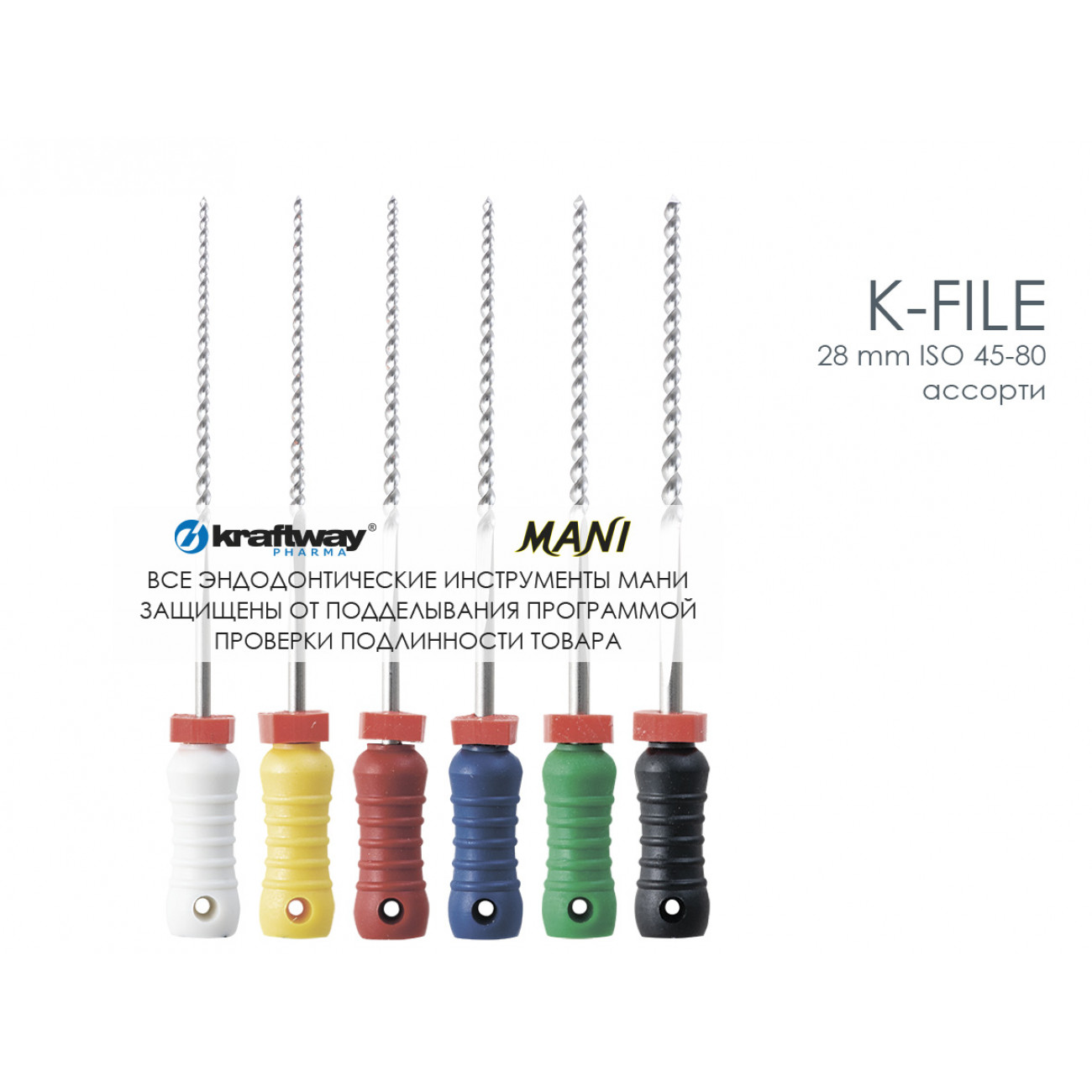 Ручной режущий стоматологический эндодонтический инструмент со спиральной нарезкой рабочей части. Материал рабочей режущей части - нержавеющая сталь, материал рукоятки – пластик (полибутилентерефталат).