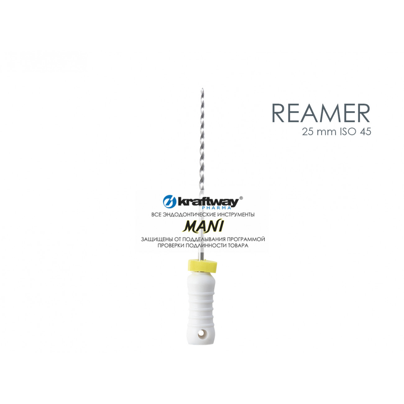 Ручной режущий стоматологический эндодонтический инструмент со спиральной нарезкой рабочей части. Материал рабочей режущей части - нержавеющая сталь, материал рукоятки – пластик (полибутилентерефталат). Шаг режущих граней увеличен, что повышает режущую способность.