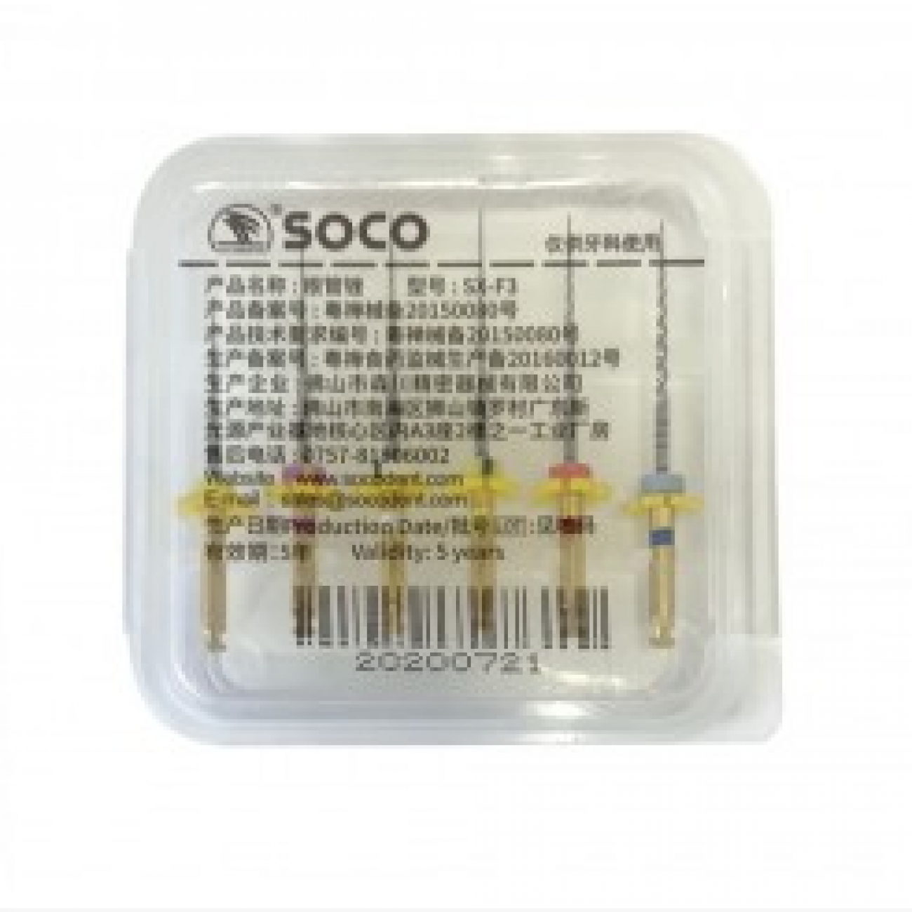 SOCO SCF-Niti Super Files Ассорти - набор усиленных никель-титановых файлов формы с электрическим приводом, предназначенных для быстрого формирования коронковых двух третей корневых каналов перед разведкой апикальной трети.