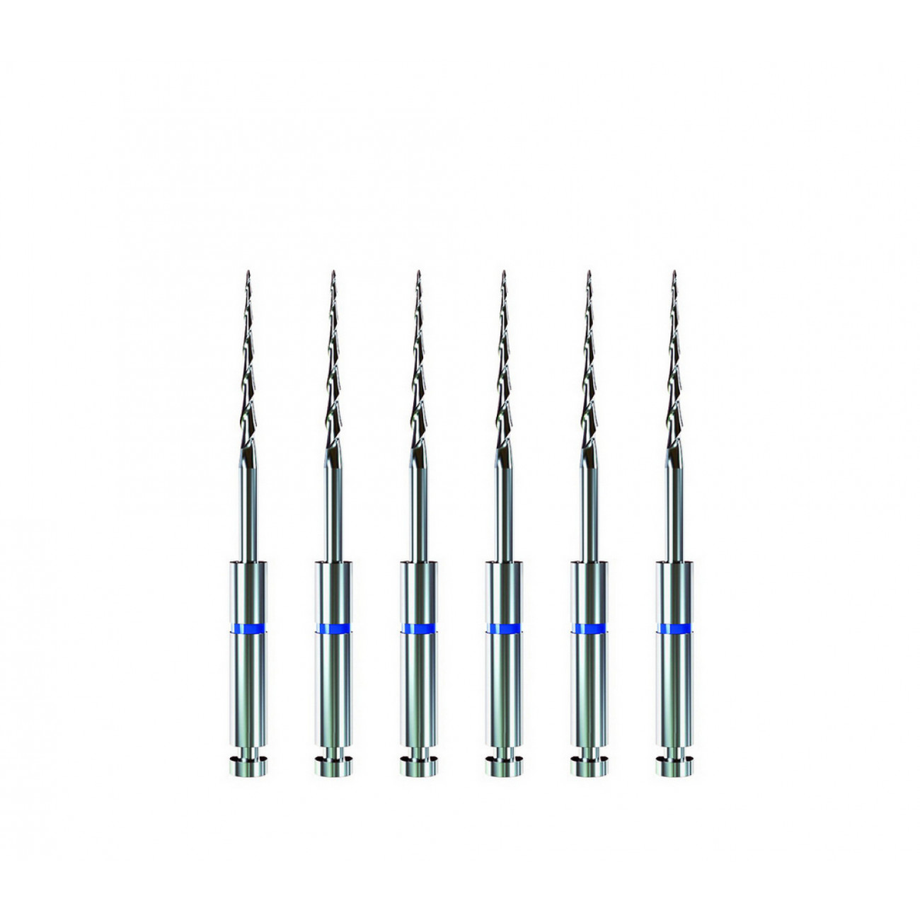 Две режущие грани под углом 90°, размещенные симметрично относительно оси на 180°, и безопасный кончик обеспечивают быстрое эффективное препарирование, снижая риск образования via falsa (ложного хода), ступенек или перфорации. Чёткая маркировка конусности (количество полосок) и размеров по ISO (цвета полосок) значительно улучшают работу.