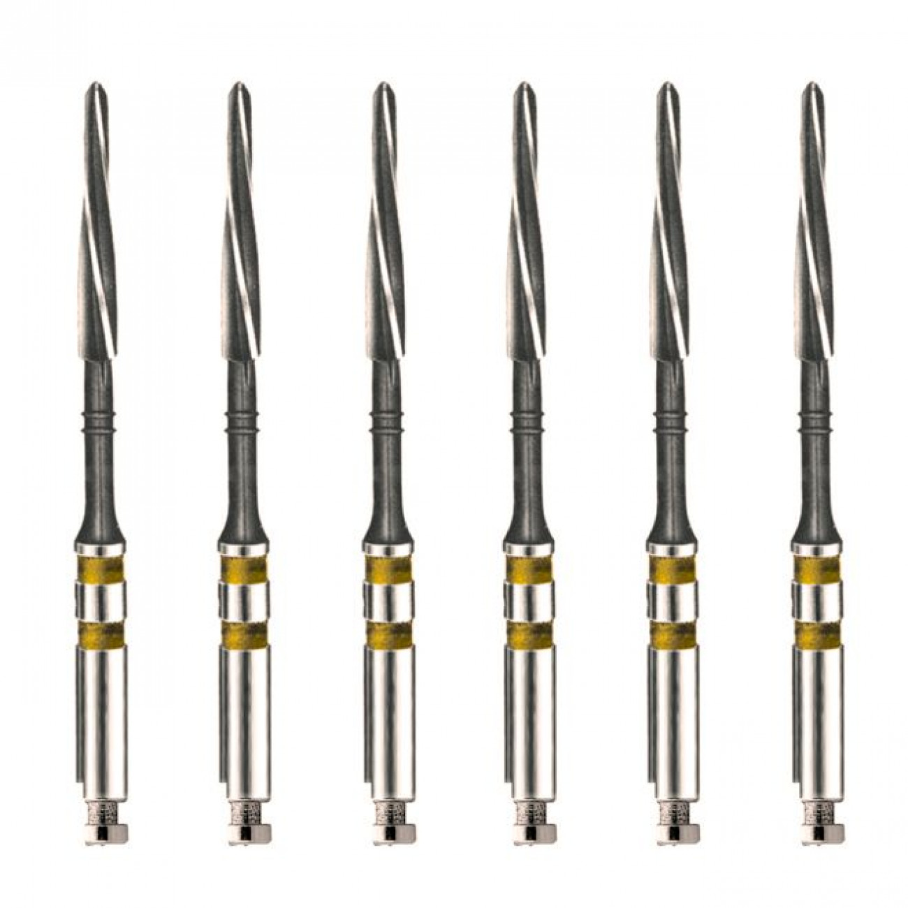 В систему Unimetric помимо штифтов входят специальные инструменты для подготовки канала: дриль специальный расширительный, дриль специальный предкалибровочный (только для штифтов Unimetric 1.0), дриль специальный калибровочный, ключ для установки штифта. Купить инструменты можно отдельно, либо в комплекте со штифтами.