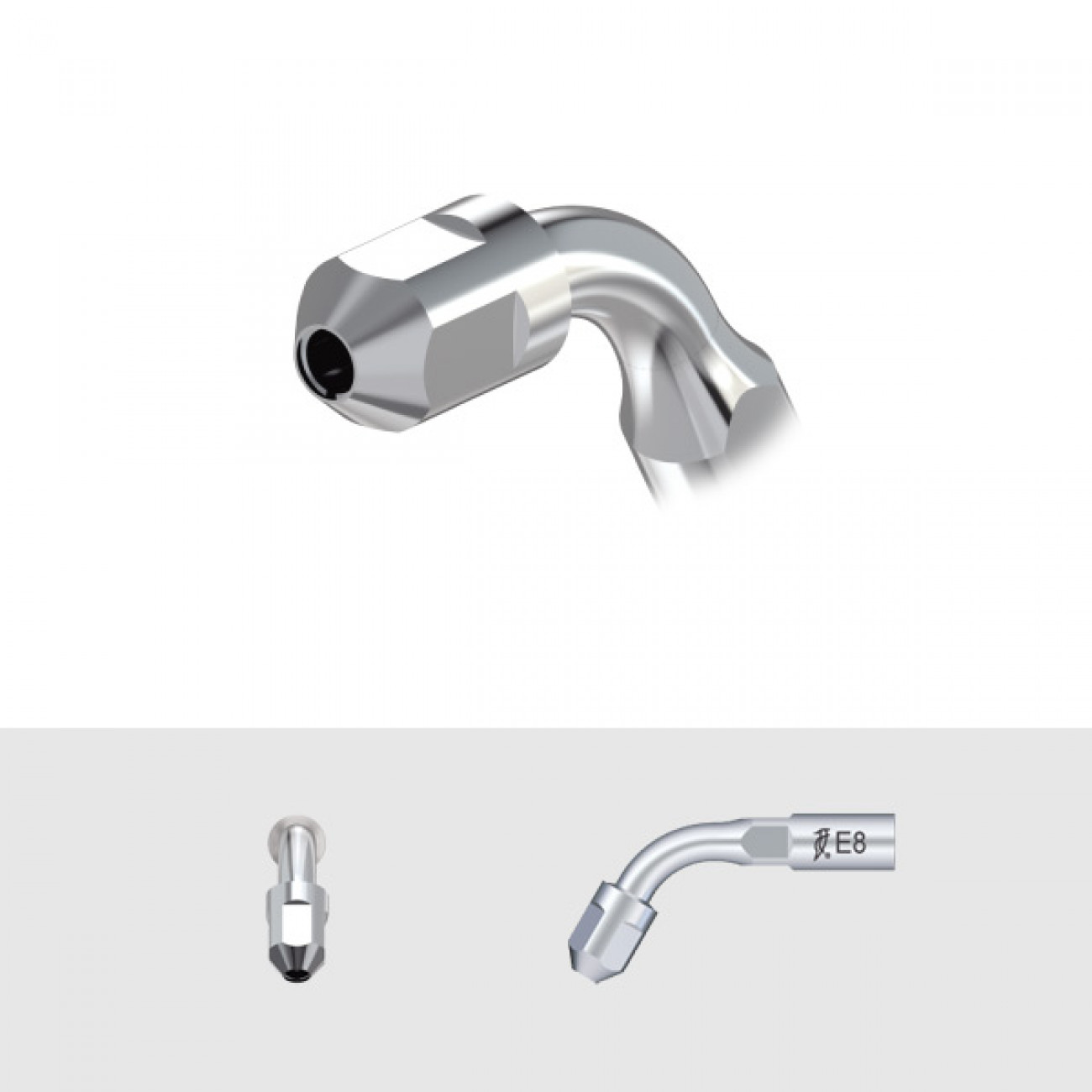 Насадка-эндочак E8 предназначена для установки различных типов стоматологических боров для проведения процедур на зубах фронтальной группы. При необходимости насадку можно использовать для работы с особыми борами для зубных имплантатов.