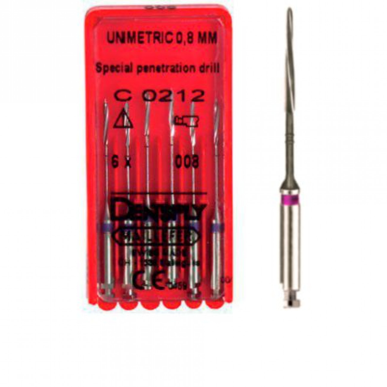 В наборе специальный расширительный дриль Unimetric 008 Dentsply Maillefer – шесть штук (специальный пенетрационный дриль). Сиреневая маркировка, 1 кольцо.