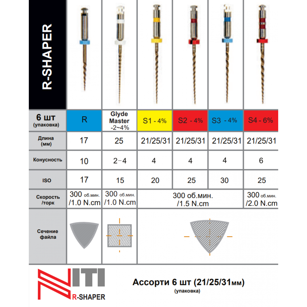 | Характеристики Р-Шейпер файл 31мм S1 04 №20 Goffshtein Dental Development | |
