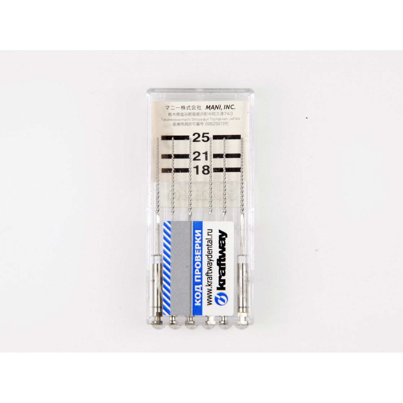Мани дрильборы (каналорасширители) машинные сверхгибкие. Для искривленных каналов (для углового наконечника). Упаковка 6 шт одной длины/отдельного ISO. Отдельно различные ISO. Различная длина 21 мм; 25 мм;