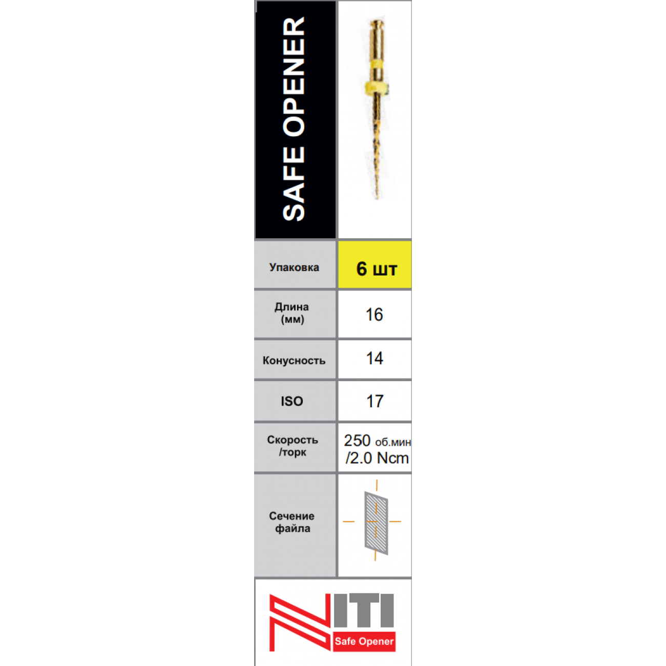 | Характеристики SAFE OPENER файл 14 №17 Goffshtein Dental Development | |
