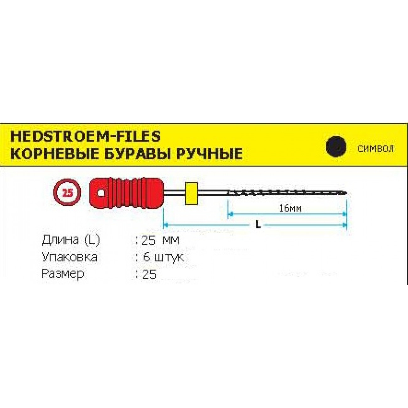 Ручной режущий стоматологический эндодонтический инструмент со спиральной нарезкой рабочей части. Материал рабочей режущей части - нержавеющая сталь, материал рукоятки – пластик (полибутилентерефталат).