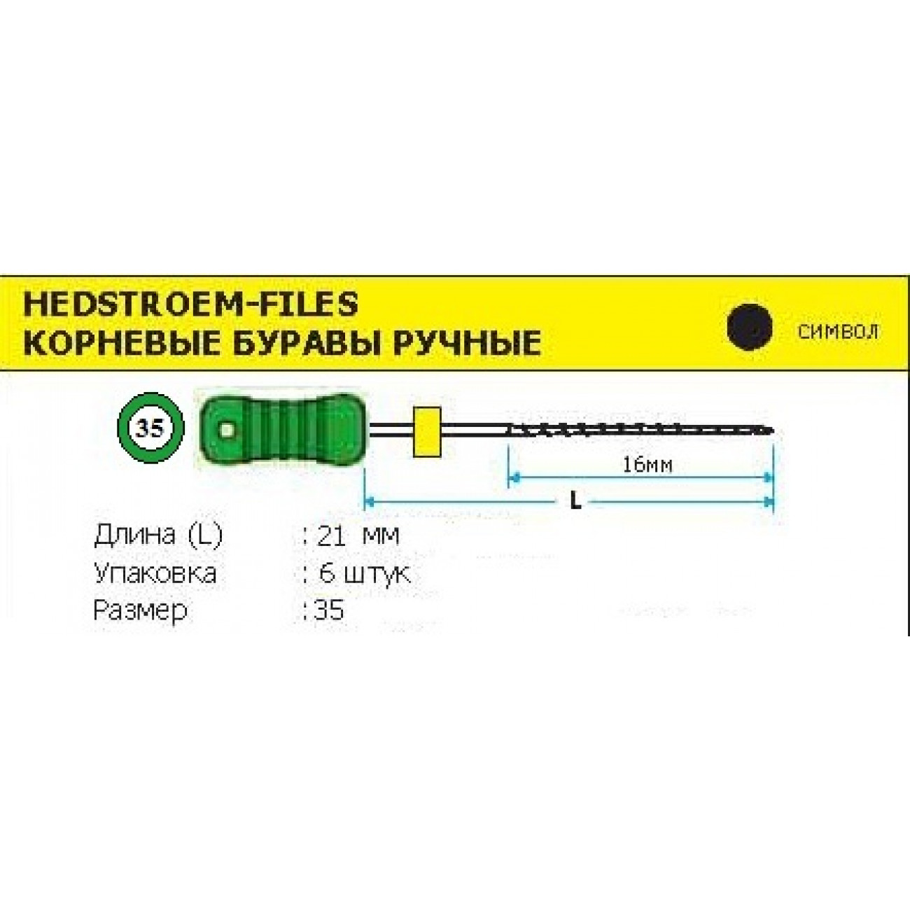 Ручной режущий стоматологический эндодонтический инструмент со спиральной нарезкой рабочей части. Материал рабочей режущей части - нержавеющая сталь, материал рукоятки – пластик (полибутилентерефталат).