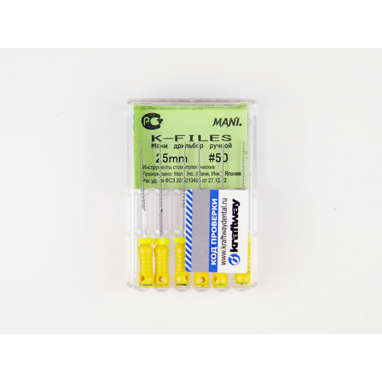 Ручной режущий стоматологический эндодонтический инструмент со спиральной нарезкой рабочей части. Материал рабочей режущей части - нержавеющая сталь, материал рукоятки – пластик (полибутилентерефталат).