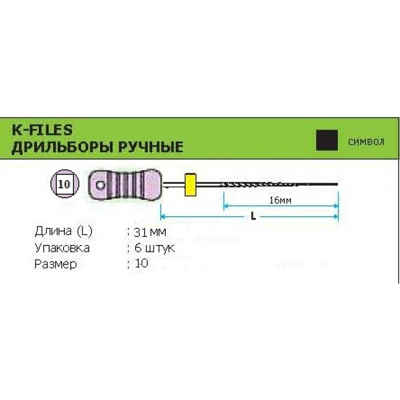 | Характеристики К-файл 31 мм №10 MANI | |