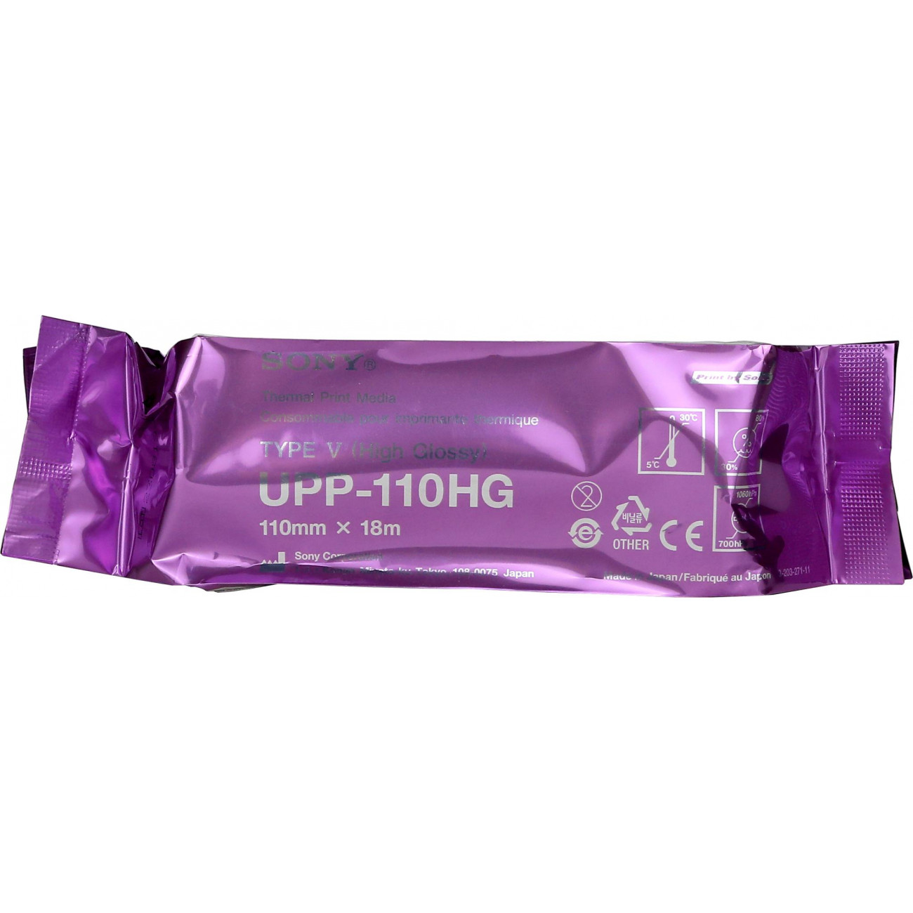 Бумага для УЗИ SONY UPP-110HG Тип V - предназначена для черно-белой печати высокого качества формата A6, является носителем печати высокой четкости для термопринтеров Sony UP-895, UP-D895, UP-897, UP-D897 и их модификаций (с буквами CE, MD, MDW и т.п.). Обеспечивает наиболее высокое качество печати по сравнению со всеми остальными типами всех термобумаг шириной 110 мм, в т.ч. производства конкурирующих фирм. Оригинальная термобумага Sony UPP-110HG, тип V (High Glossy - Высокий глянец) - обеспечивает максимальный уровень качества при термопечати с высоким разрешением и длительную эксплуатацию принтеров без преждевременного выгорания элементов печатающей термоголовки. Это связано в первую очередь с полным отсутствием бумажной пыли на поверхности рулона и стабильными характеристиками термочувствительного слоя (более высокими, чем у UPP-110S и UPP-110HD).