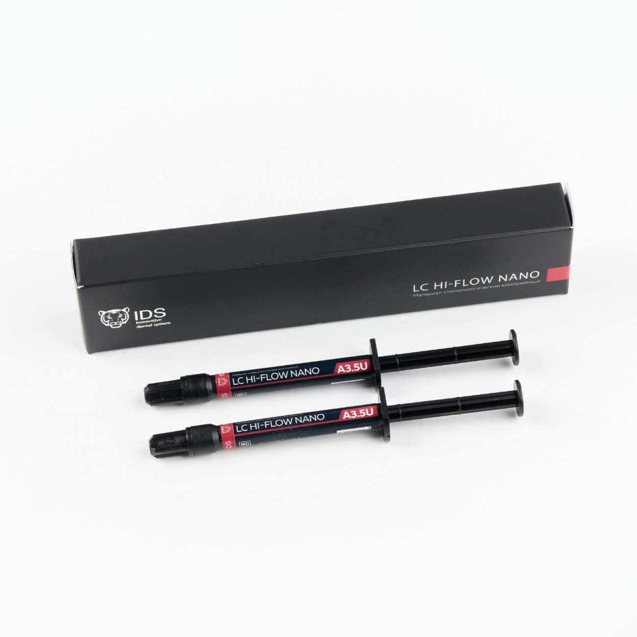 LC HI-FLOW NANO – это наногибридный тиксотропный текучий композит последнего поколения. Главной особенностью композитного материала является смешанный наполнитель, включающий сферические частицы для обеспечения превосходной эстетики за короткое рабочее время и агломерированные молотые наночастицы для обеспечения надёжности и долговечности реставраций.