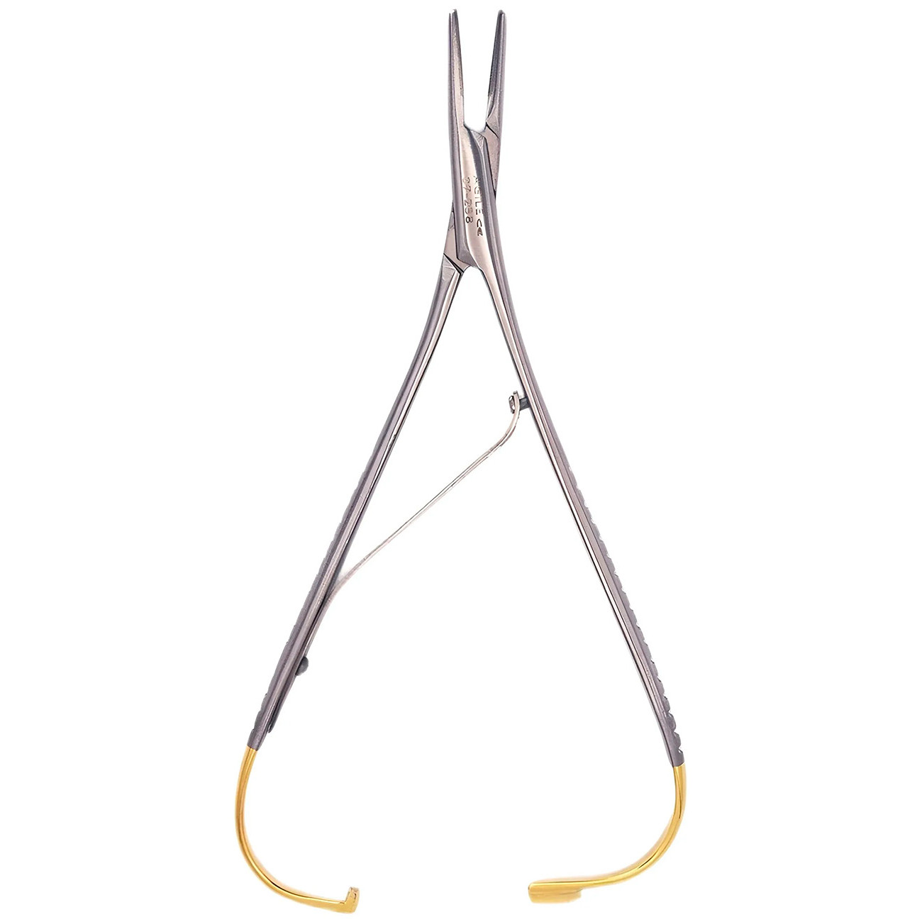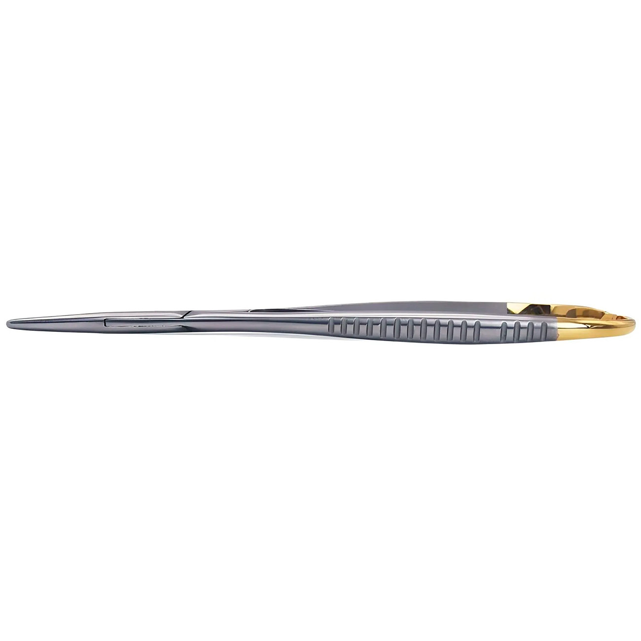 Благодаря подпружиненной рукояти с механизмом плавного разведения, силу сжатия инструмента можно регулировать одной рукой - без небходимости захватывать иглу пальцами. Узкий кончик иглодержателя 07-238 обеспечивает достаточную свободу движений при наложении длинной лигатуры непосредственно в полости рта.
